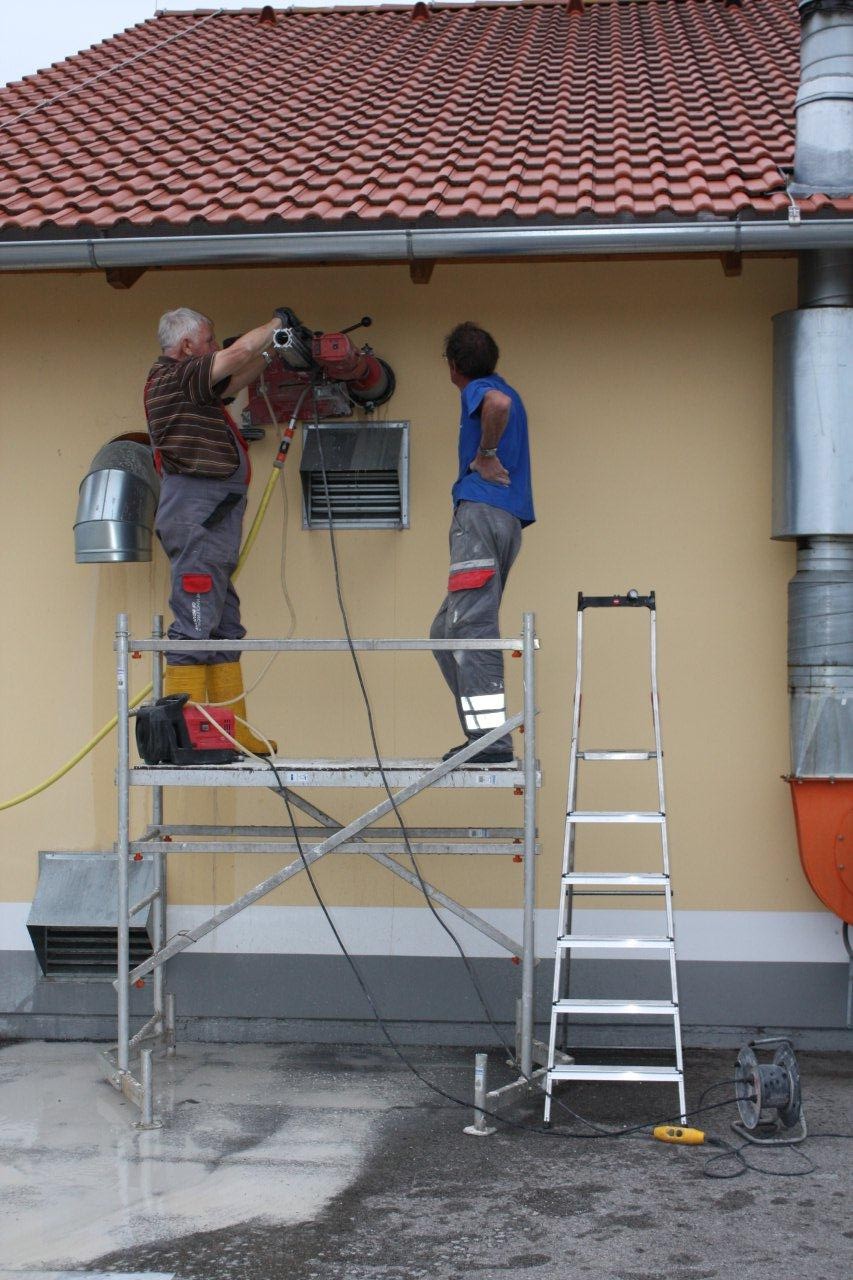 Die Löcher für die Abluft sind (soeben) gebohrt. (siehe Bilder unten)